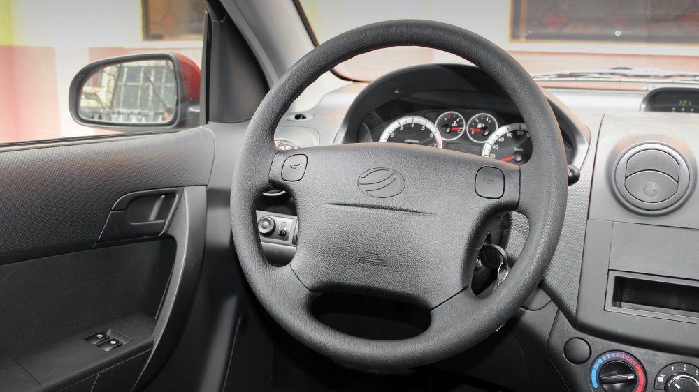Старым добрым ключом открываем центральный замок (он же подходит и к замку зажигания), попадаем в салон. Водительская дверь распахивается широко, да, собственно, на удобство посадки в Aveo и Vida за годы их производства не жаловался никто – какой бы комплекции ни был водитель.