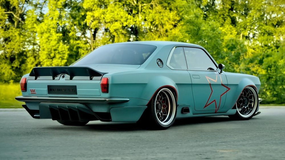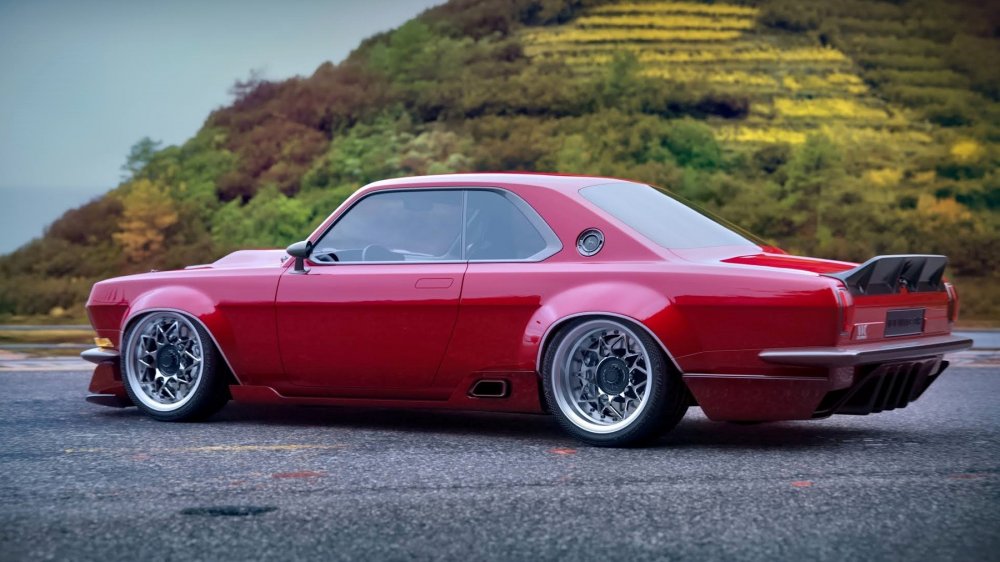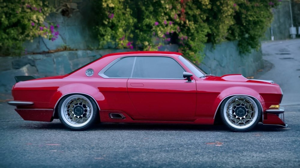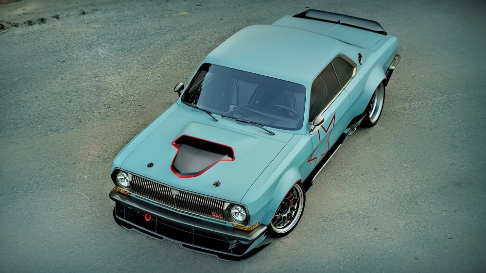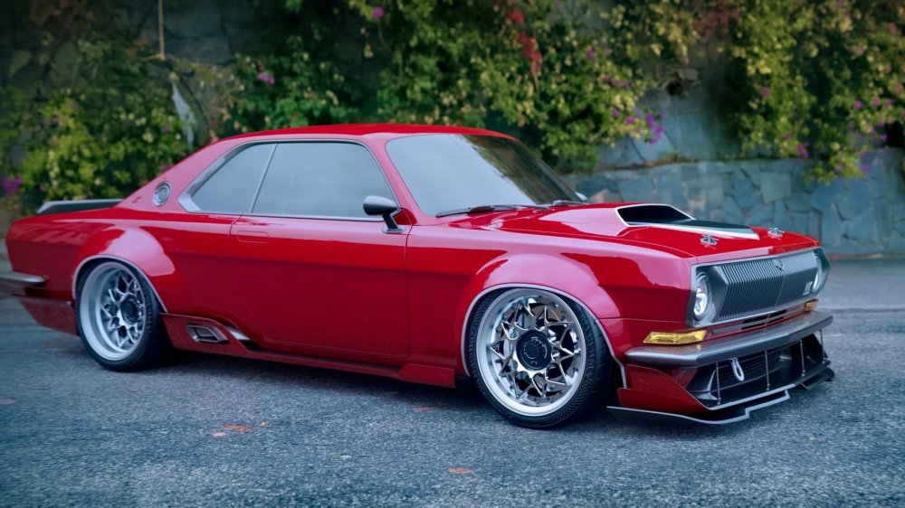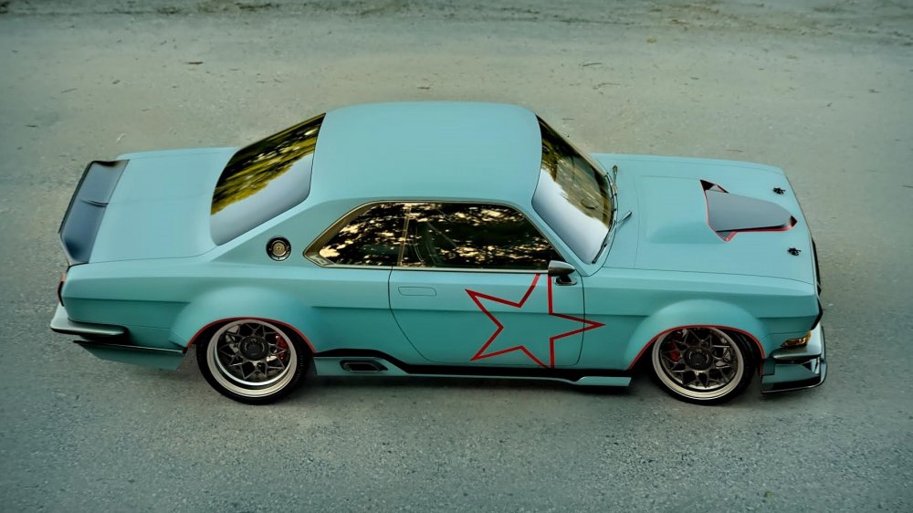 Светотехника, бамеры, двери с безрамочными стёклами и выдвижными ручками, все наружные кузовные панели и даже зеркала заднего вида — абсолютно новые. Колея существенно расширена и потребовала пухлых колёсных арок. Дорожный просвет — практически на уровне лоурайдеров, передний сплиттер едва не стелется по земле. Выхлоп выведен по бокам, перед задними колёсами. В нижней части кормы можно разглядеть «гребёнку» диффузора. Крышку багажника венчает чёрный спойлер в классическом стиле. Горб воздухозаборника на капоте намекает на могучий V8 под капотом, желательно с механическим нагнетателем, как у топовых американских маслкаров.