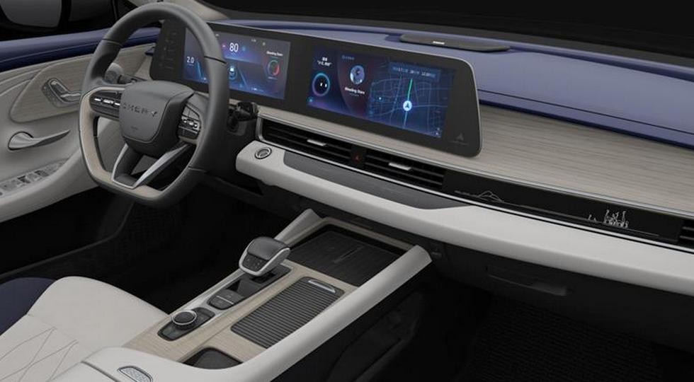 Новинке досталась огромная радиаторная решетка в стиле свежего паркетника Chery Omoda 5, а также необычная головная оптика: диодные фары «пронзает» довольно массивная плашка. Другие особенности экстерьера – купеобразный кузов, дополнительные окошки в задних стойках и наружные зеркала на отдельных ножках. По неофициальным данным, длина модели равна 4750 мм, колесная база – 2750 мм.