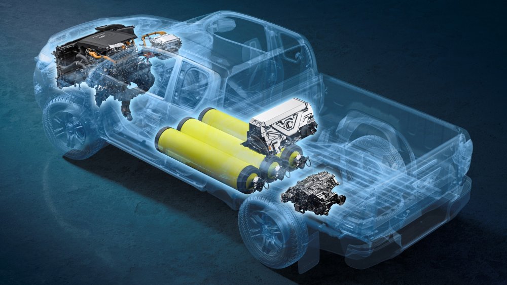 В общем, получится не самый изящный с технической точки зрения, но вполне рабочий вариант водородного пикапа, который можно будет продавать за разумные деньги, то есть по цене, не сильно превышающей цену Mirai: водородный седан сейчас можно купить в Великобритании за 53 995 фунтов стерлингов, в Германии — за 65 990 евро.