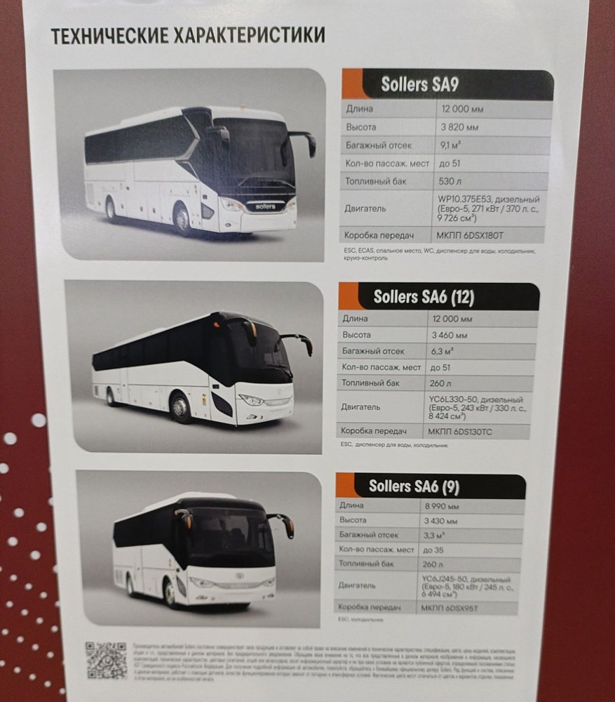 Sollers ожидаемо выкатил два своих автобуса: «туриста» Sollers SA9 и «межгород» Sollers SA6 в двух модификациях. На стенде стоял ещё пассажирский микроавтобус на базе Атланта, но массивные старшие братья своими тушками его затмевали.
