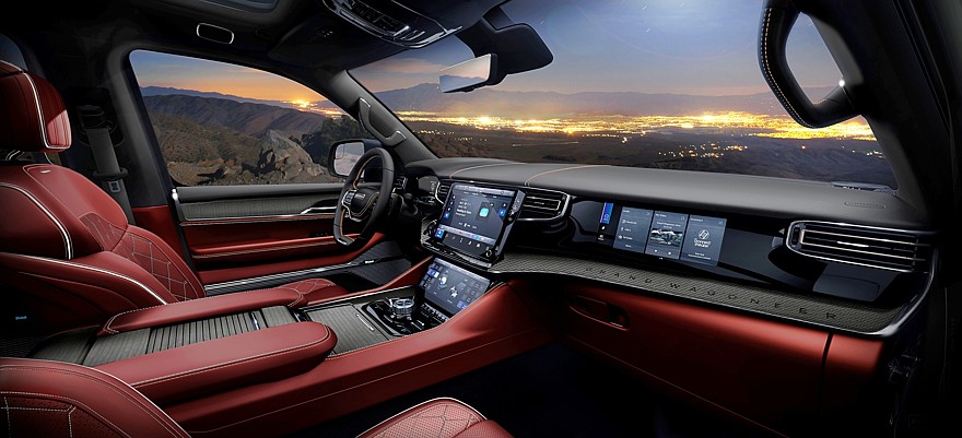 Между тем в салоне Jeep Grand Wagoneer блестящие детальки остались, принципиальных изменений здесь нет, но улучшены отделочные материалы, а проекционный экран на лобовом стекле стал шире и информативнее. Штатная аудиосистема McIntosh в зависимости от комплектации насчитывает 19 либо 23 громкоговорителя. Для пассажиров второго ряда доступны вентиляция сидений и собственные мультимедийные экраны.