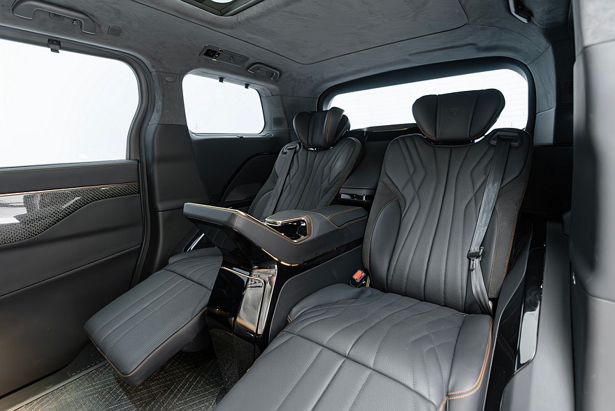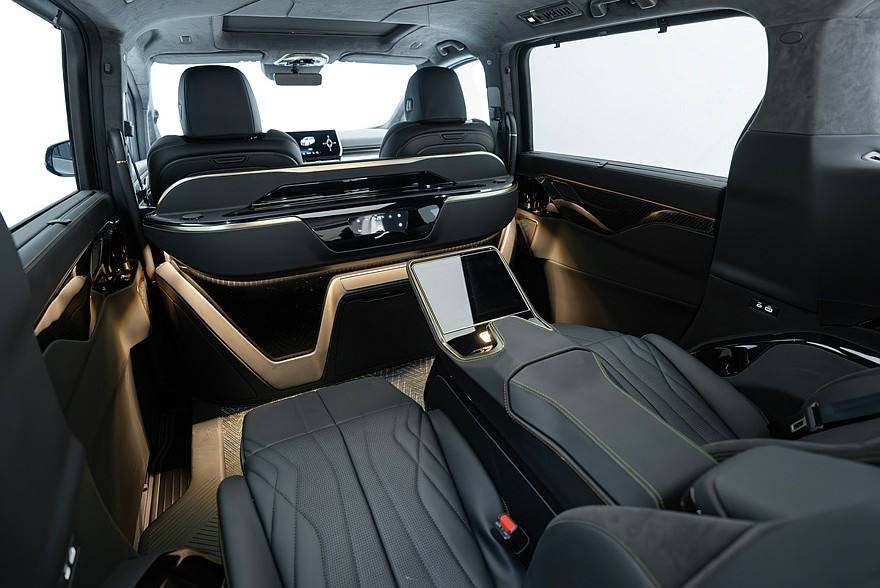 В рамках презентации, посвященной старту продаж, показали еще и тюнингованный вэн со стандартной колесной базой – Co-creation Edition. Фишки этого варианта – внушительный обвес, оригинальные радиаторная решетка и колпаки на колесах. Такой минивэн имеет четырехместный интерьер с перегородкой, отделкой алькантарой и Nappa, плюс внутри есть «позолота». Правда, в Wey пока не сообщили, доберется ли Alpine Co-creation Edition до дилерских центров. Так что вернемся к серийному MPV.
