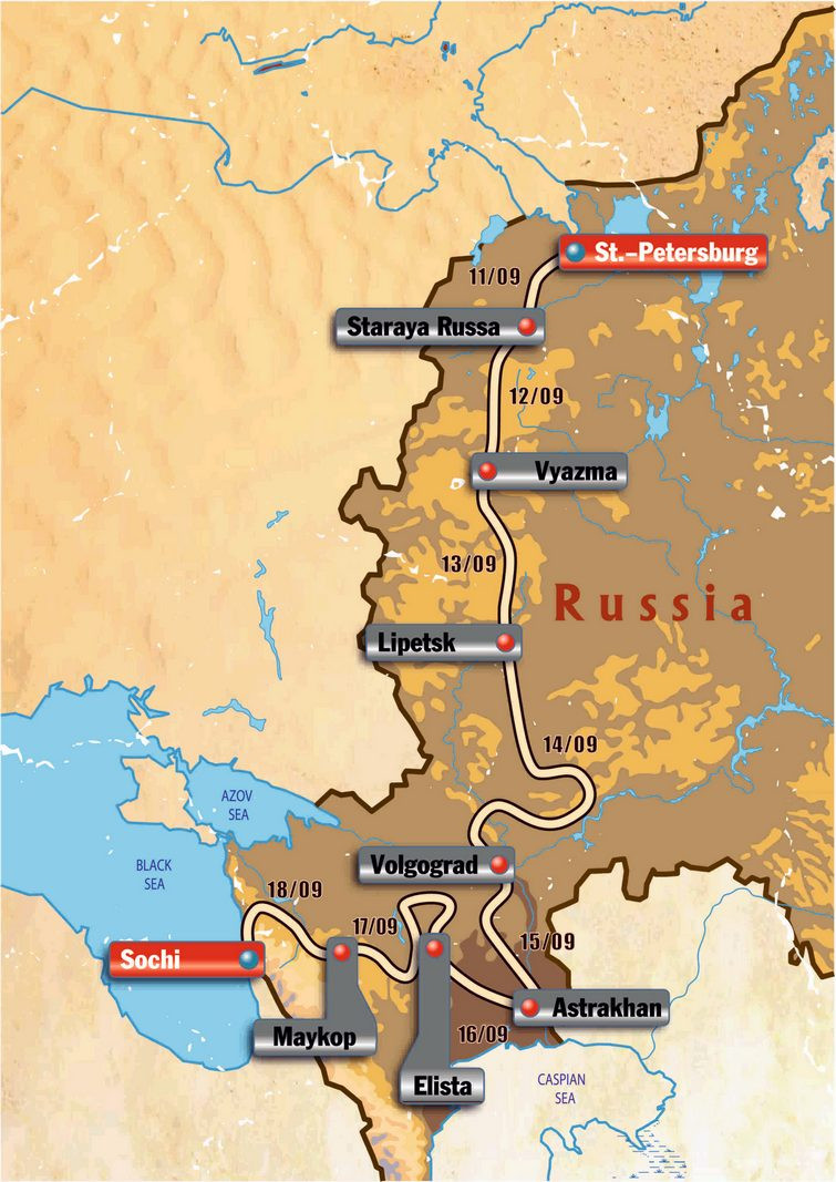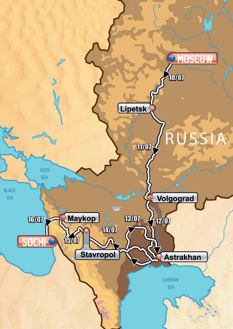 В сезонах с 2010 по 2013 годы маршрут проходил только по территории нашей страны. В 2010 году он пролегал из Санкт-Петербурга в Сочи. Из города на Неве спортсмены через Ленинградскую, Новгородскую, Смоленскую, Липецкую, Волгоградскую и Астраханскую области добрались до Калмыкии, оттуда – в Адыгею и финишировали в Сочи. Тогда в категории легковых машин вновь победил Карлос Сайнс, а среди грузовиков первым был экипаж Эдуарда Николаева на КАМАЗе.