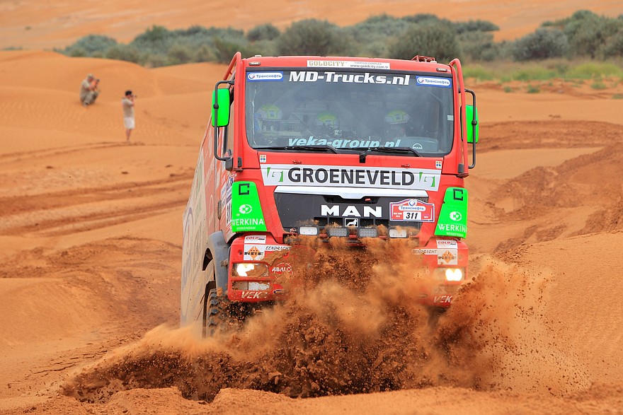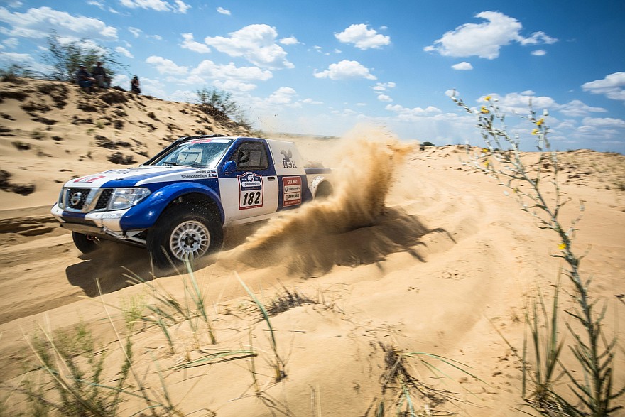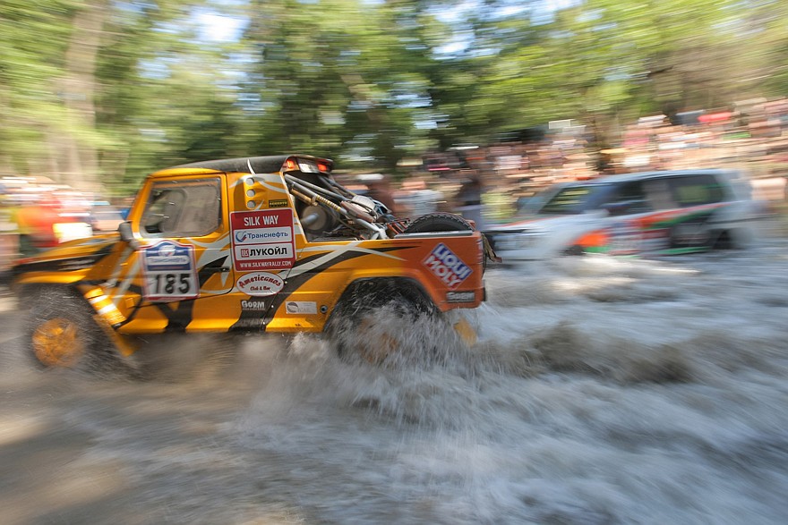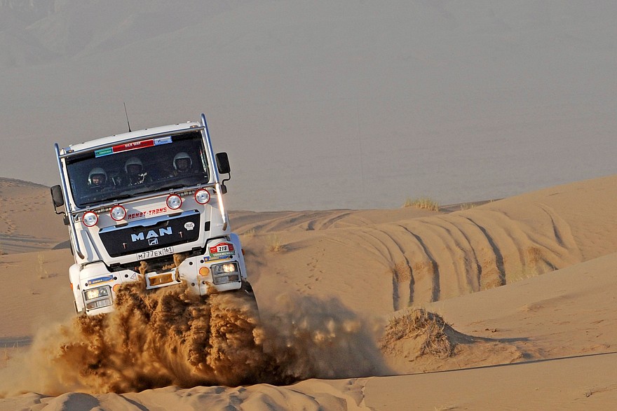 «Шелковый путь» 2013 года запомнился адской жарой. Он тоже стартовал в Москве, но закончился в Астрахани. Маршрут протяженностью в 4000 км, из которых 3000 км – спецучастки, местами напоминал Дакар: настоящий африканский зной и пески. Наверное, нет ничего странного в том, что в классе легковых внедорожников никто не смог обойти экипаж двукратного победителя Дакара Жан-Луи Шлессера. Ну а среди грузовиков вполне ожидаемо вперед вырвался Дмитрий Сотников из «КАМАЗ-мастер».