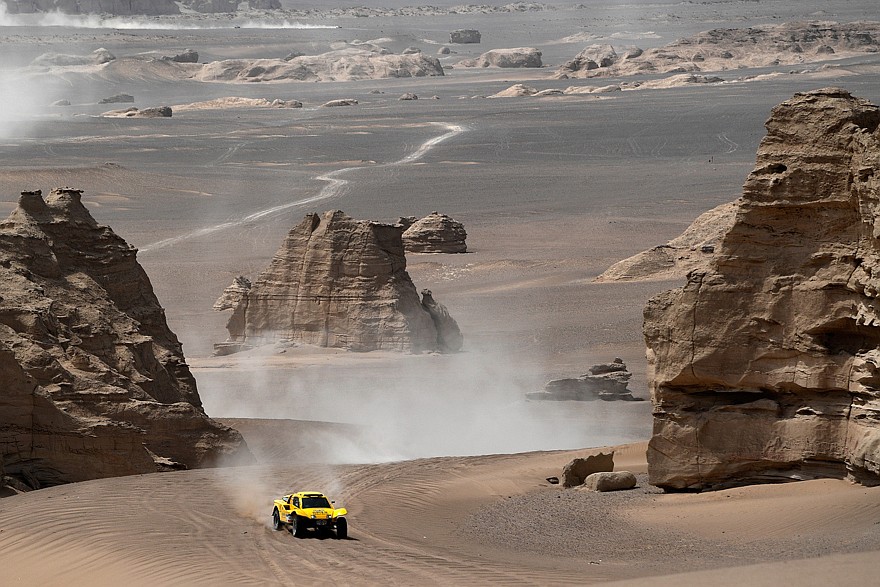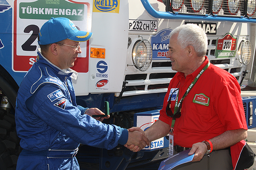 Стартовал «Шелковый путь» в Москве, а финишировал в Китае, в Пекине. Общая протяженность составила небывалые 10 735 км, из которых 4105 км – боевые. Горы Казахстана, пески пустыни Гоби, очень сильный международный состав… Это был прорыв. Высшие места на тумбочке тогда заняли экипажи француза Сириля Депре из Peugeot и Айрата Мардеева («КАМАЗ-мастер»).