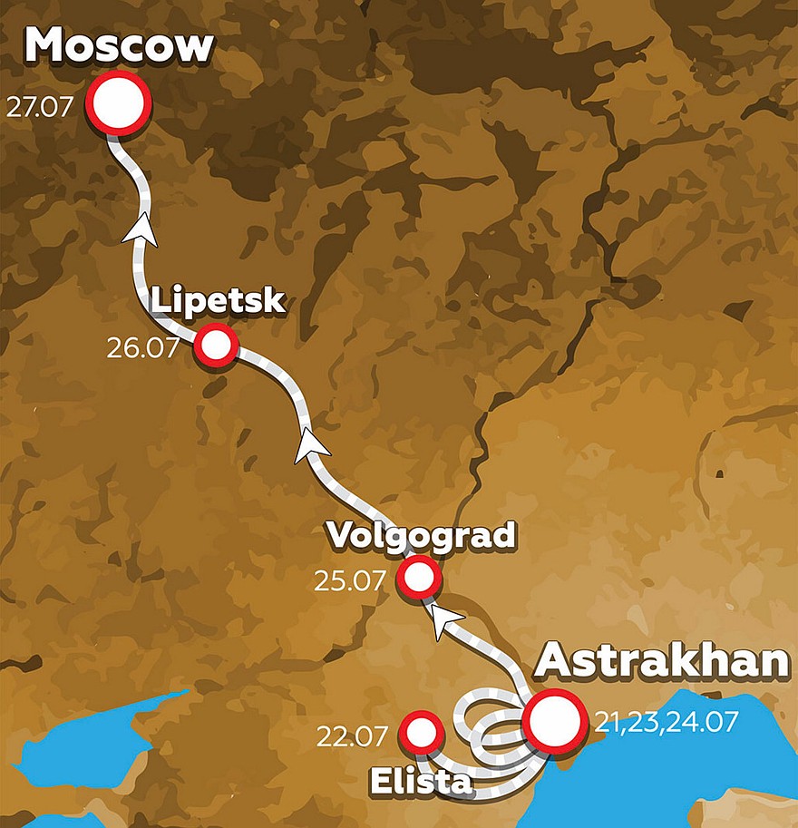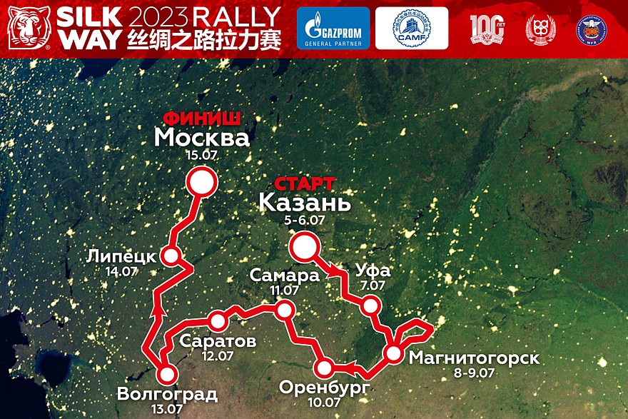 2023 год выдался очень сложным для всего российского спорта в целом и для автомобильного в частности. «Шелковый путь» стал фактически внутрироссийским марафоном. Но маршрут все равно впечатляет: 5248 километров, из которых 2277 – скоростные участки. Проходил он через 13 регионов Российской Федерации: Республику Татарстан, Республику Башкортостан, Челябинскую область, Оренбургскую область, Самарскую область, Саратовскую область, Волгоградскую область, Воронежскую область, Тамбовскую область, Липецкую область, Тульскую область, Московскую область и Москву. Церемония старта состоялась 6 июля на площади Тысячелетия в Казани, участников ждали девять этапов, заключительный из которых привел их 15 июля в Москву – на торжественный финиш на Васильевском спуске у стен Московского Кремля.