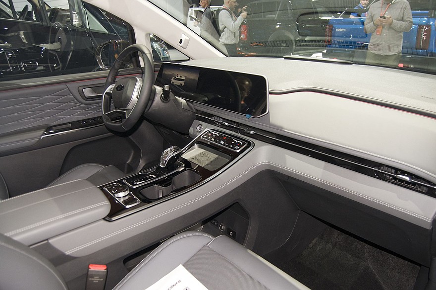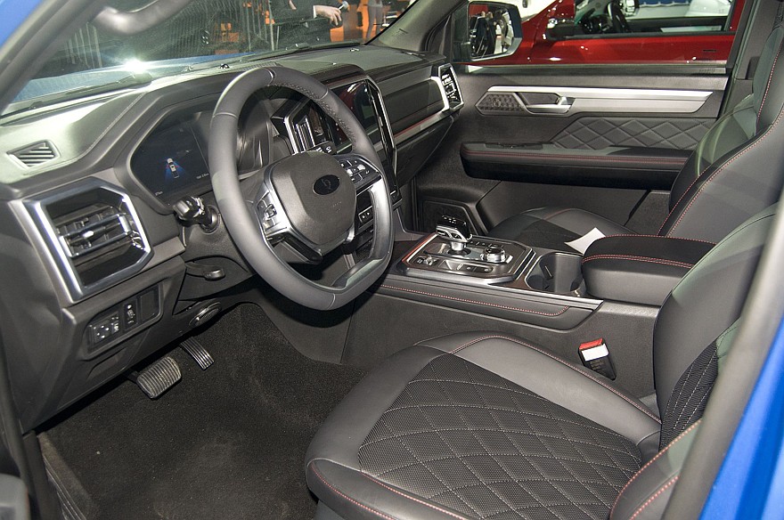 Пикапы, конечно, не настолько пафосные. Кроме уже существующего ST6 и уже почти существующего ST8 (его начнут продавать в январе 2025 года) появится ещё и ST9. По сути, это всё один и тот же пикап JAC с общей платформой. Но если первые два рассчитаны на тех, кому нужна утилитарная и не слишком дорогая дизельная машина с механической коробкой передач, то ST9 адресован тем, кому хочется большой красивый внедорожник, выбор которых на рынке сейчас ограничен. В этом случае потешить самолюбие может большой красивый пикап. Поэтому ST9 намного богаче упакован: тут есть и датчики дождя и света, и климат-контроль, и круиз-контроль, и передние сиденья с электроприводом и подогревом, и подлокотник в заднем диване, и система бесключевого доступа и запуска двигателя, и многое другое. А еще он отличается более мощным бензиновым двигателем (231 л.с. против 136 л.с. дизельных ST6 и ST8) и 8-ступенчатой АКП вместо механики. Ну а почему бы и нет? Может, кому-то нужен как раз такой пикап. Причём Sollers в ближайшем будущем обещал выкатить ещё и новый полноразмерный рамный внедорожник, который на рендере очень похож на пикап ST9. Живьём эту машину пока не показали, но, видимо, это будет что-то на базе этого же JAC T9. Ну или Соллерса ST9 – тут кому как нравится.