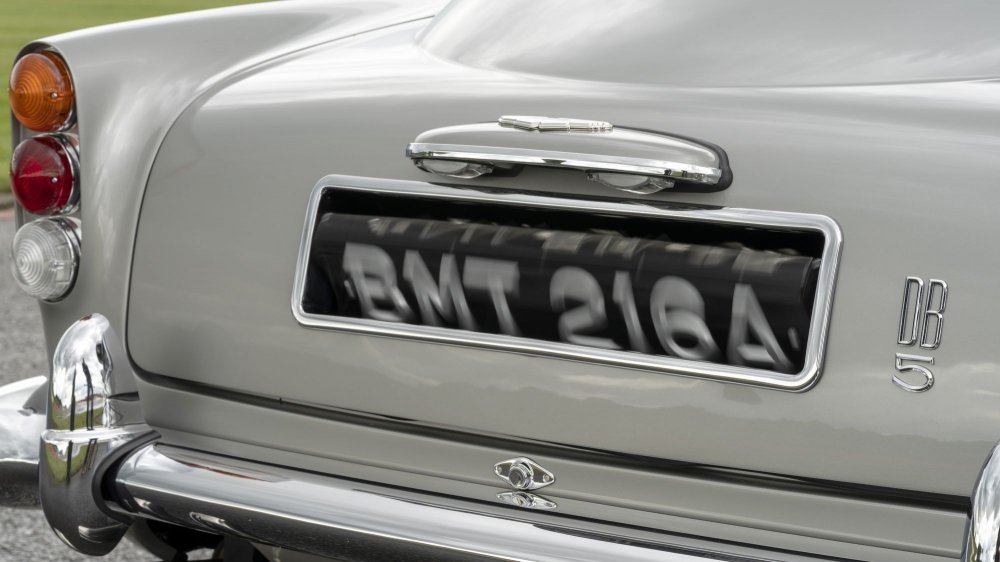 Автомобиль, который называли Aston Martin DB5 Goldfinger Continuation, во всех подробностях воссоздаёт киношный прототип: тут вам и сменные номера, и пулемёты в подфарниках, и бамперы с клыками-таранами, и дымовая завеса, и разбрызгиватель масла, и прокалыватели шин, и выдвижной пуленепробиваемый экран, и пассажирское кресло-катапульта (опция), и бакелитовая телефонная трубка, и радар с круглым экраном. Всё, разумеется, бутафорское, но из дул пулемётов при активации идёт огонёк, дымовая завеса работает, и даже, наверное, по трубке можно куда-нибудь позвонить.