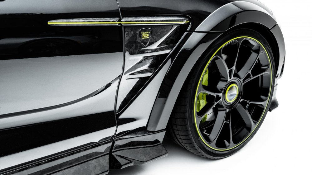 Самый впечатляющий элемент обвеса — этажерка спойлеров на корме, причём нижний аккуратно повторяет трапециевидную пластику кузова, этот же мотив использован в лаймовом орнаменте перфорированных кожаных вставок в салоне. Лаймовые вставки есть и снаружи, в том числе на 24-дюймовых колёсных DX.5, специально разработанных для этой модели и улучшающих охлаждение тормозных механизмов. Размерность шин — 295/30 R 24 спереди и 355/25 R 24 сзади.