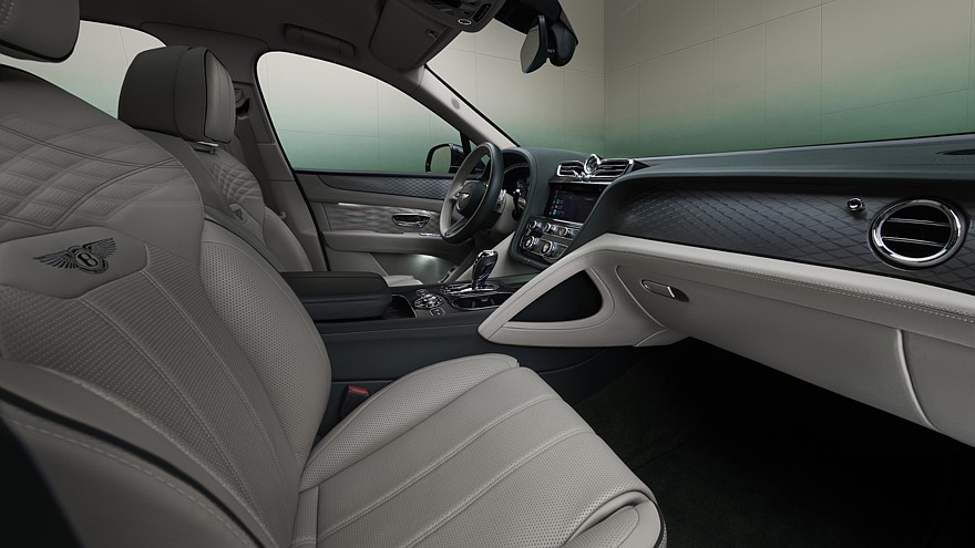 Для оформления интерьера новой особенной серии кроссовера Bentley тоже предусмотрены дополнительные цветовые схемы: есть несколько новых двухцветных вариантов, которые сочетаются с теми оттенками кузова, которые пополнили палитру спецверсии; кроме того, предусмотрен различный декор, в том числе из алюминия и шпона.