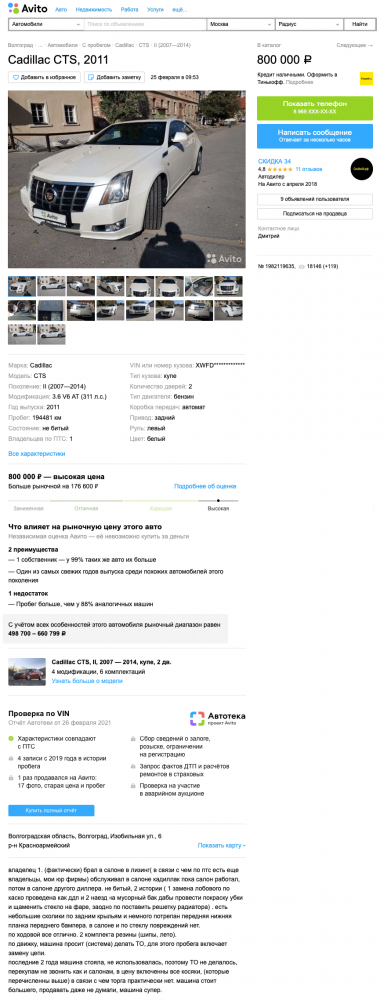 Ну а тем, кто влюбился в купе, выбирать мотор не придется – они, не считая версии CTS-V, выпускались только с мотором 3,6 литра, так что денег нужно побольше и на покупку, и на содержание. Однако еще есть шансы найти автомобиль от первого собственника с прозрачной историей – например, такой. Главное, чтобы Автотека подтвердила честность рассказа продавца об истории регистраций, а заодно уверила вас в отсутствии аварийного прошлого, ограничений на регистрацию и других проблем. И если все окажется в порядке, останется лишь не жалеть денег на то, чтобы внутренняя красота машины была такой же безоговорочной, как внешняя.