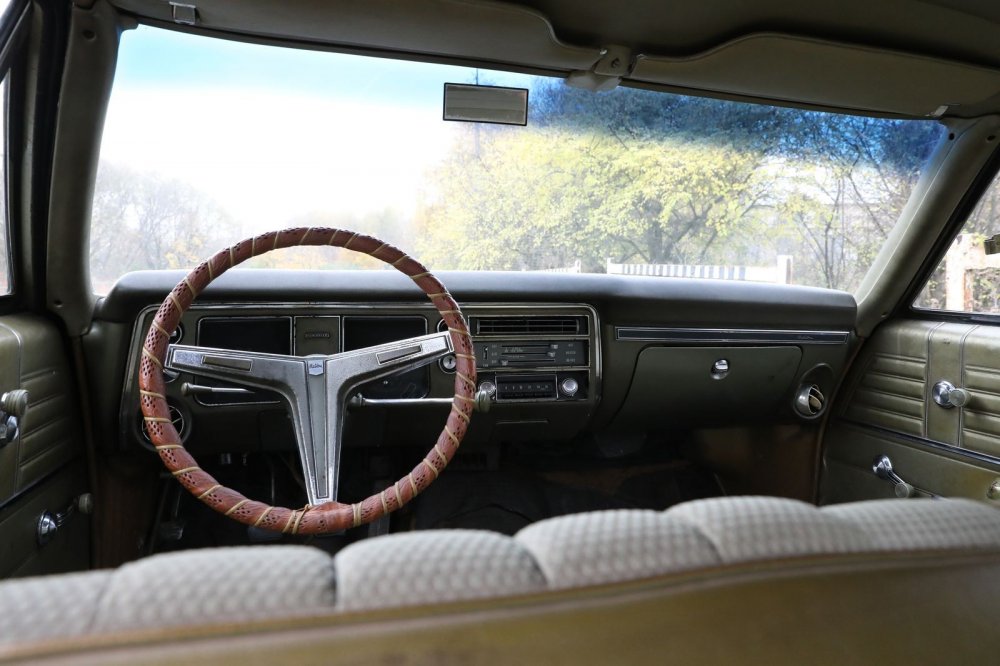 Руль, что стоит на этом экземпляре, считался люксовым – базовая баранка очень простенькая и похожа на трехспицевое колесо от старого уазика. В то время только-только начали заморачиваться пассивной безопасностью: торпедо Chevelle уже мягкое, но руль еще весь металлический, и колонка не складывается при ударе.