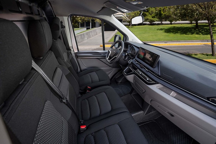 В списке оборудования электрического фургона заявлены: светодиодные фары, противотуманки, расположенный в приборке экранчик на 4,2 дюйма, мультимедиа-система с планшетом диагональю 12,3 дюйма, кондиционер, камера заднего вида.