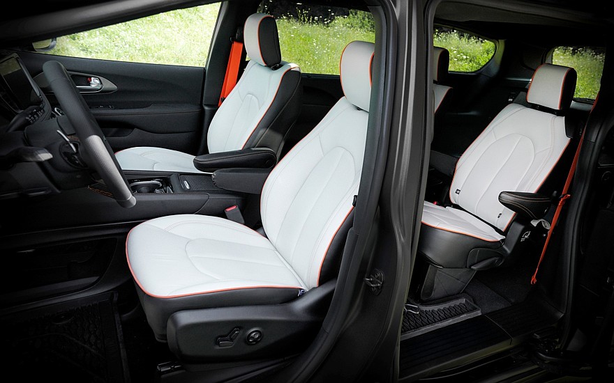 Напомним, что полный привод минивэн Pacifica обрёл в 2020 году по многочисленным просьбам клиентов, но сочетается он только с 3,6-литровым бензиновым V6 (291 л.с., 355 Нм) и 9-ступенчатым «автоматом», а plug-in гибридная Pacifica бывает только переднеприводной. За основу версии Grizzly Peak взят полноприводный минивэн в средней комплектации Limited. Передняя подвеска приподнята на 63 мм, задняя — на 70 мм, 18-дюймовые колёса обуты в 31-дюймовые «зубастые» шины BFGoodrich All Terrain T/A KO2. Кузов по нижнему периметру получил защитную оклейку чёрного цвета.