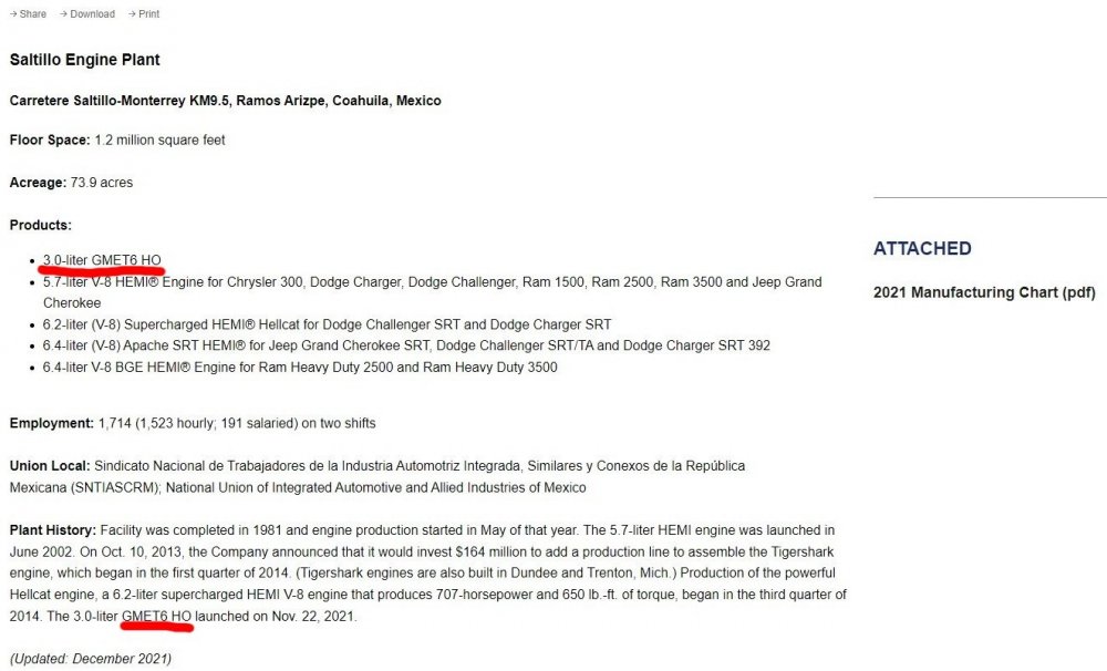 Детективная история развернулась вокруг мексиканского моторного завода Saltillo корпорации Stellantis. Согласно официальному отчёту, 22 ноября этот завод освоил производство нового бензинового рядного 6-цилиндрового двигателя GMET6, который в ближайшие годы заменит атмосферные V6 и V8, но в декабре упоминания об этом моторе с медиа-сайта Stellantis были удалено.