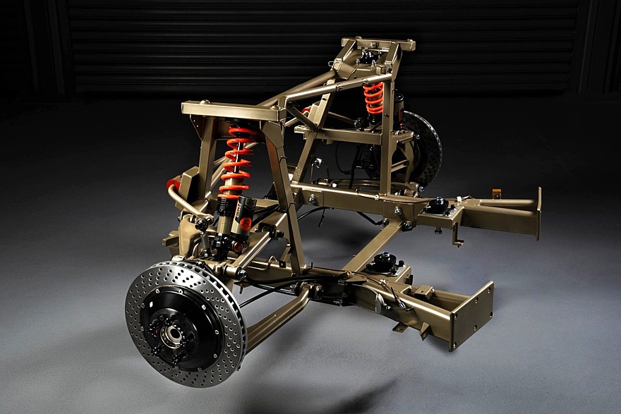 Новое шасси для 355 by Evoluto разработано совместно с британской компанией R53 Suspension, передняя колея расширена на 77 мм спереди и на 66 мм сзади, полностью пересмотрена геометрия рычагов и точек их крепления, сами рычаги стали легче, установлены облегчённые ступичные подшипники в сочетании с усиленными полуосями, регулируемые амортизаторы снабжены внешними резервуарами.
