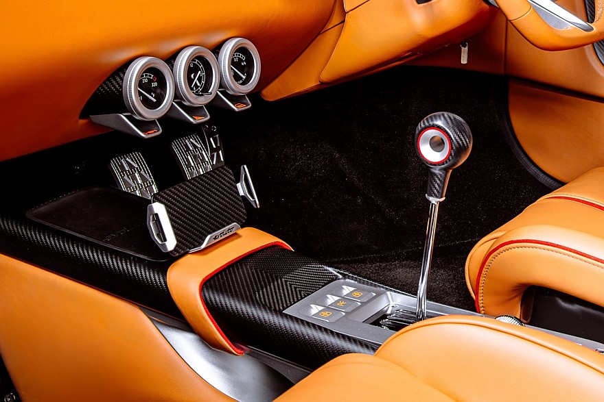 Салон переработан более радикально, чем внешность. Новая углепластиковая передняя панель добавляет кузову жёсткости, вдобавок она визуально облегчена за счёт компактных круглых воздуховодов вместо стоковых прямоугольных. Центральная консоль удалена, поэтому три оставшихся от неё прибора словно парят в воздухе — на самом деле каждый прибор получил свой углепластиковый корпус и оправу из фрезерованного металла. Также из фрезерованного металла выполнены спицы нового руля, подрулевые рычажки, элементы рычага коробки передач, педали, кнопки и ряд других мелких элементов. Дверные карты и центральный тоннель переделаны. Установлены новые лёгкие ковшеобразные сиденья с интегральными подголовниками. Основные материалы отделки — натуральная кожа, замша и угепластик. Цветовые сочетания выбирает заказчик.