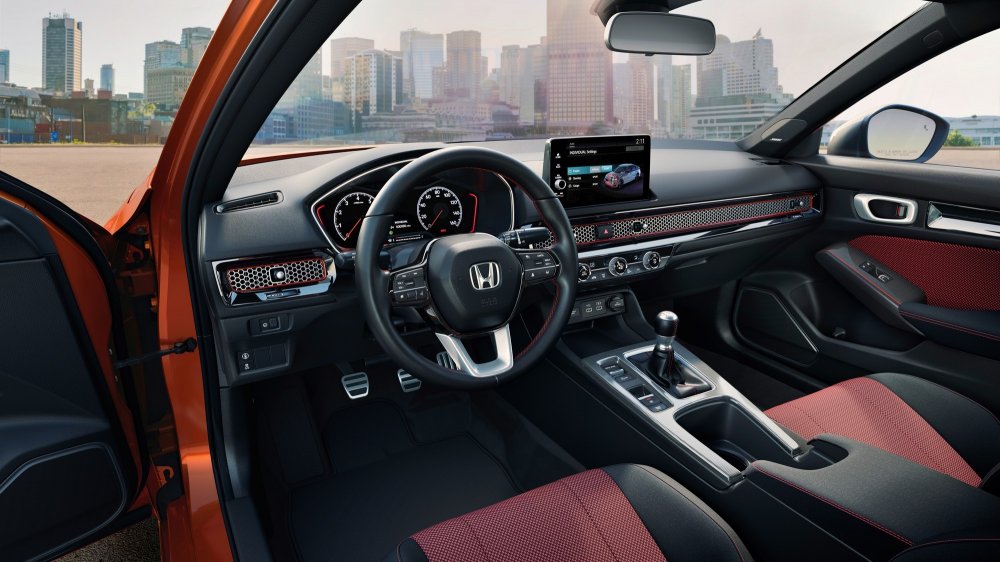 В салоне — новые спортивные передние кресла с развитой боковой поддержкой и интегральными подголовниками, более качественные, чем у обычного седана, материалы отделки, алюминиевые накладки на педалях, контрастная красная прострочка, красные вставки на передней панели, сиденьях и дверных картах. В базу входят мультимедийная система с 9-дюймовым экраном (у обычного седана в базе 7-дюймовый экран), 10 подушек безопасности и комплекс систем активной безопасности Honda Sensing.