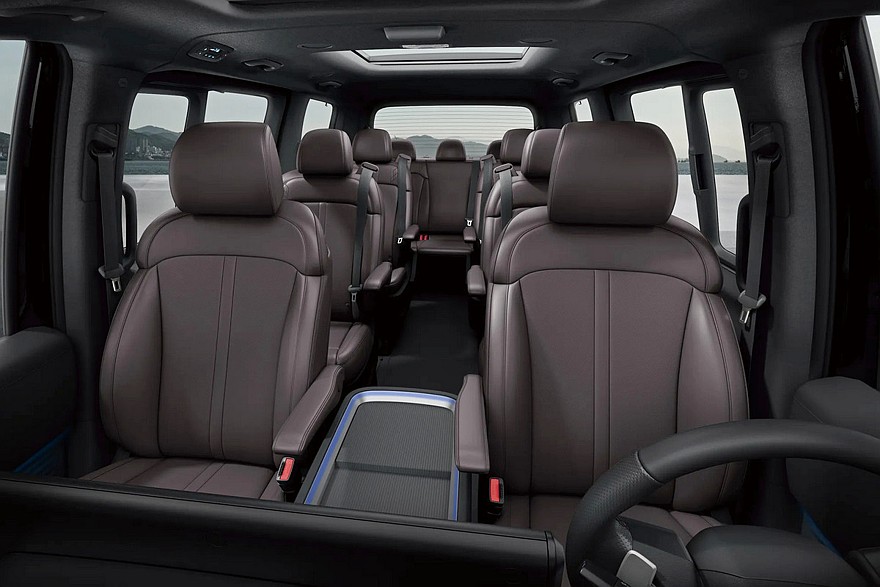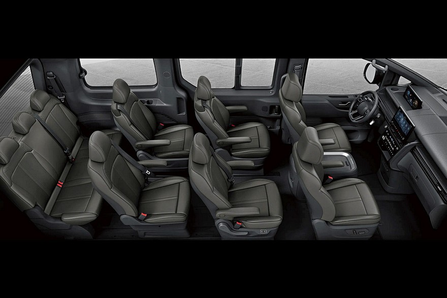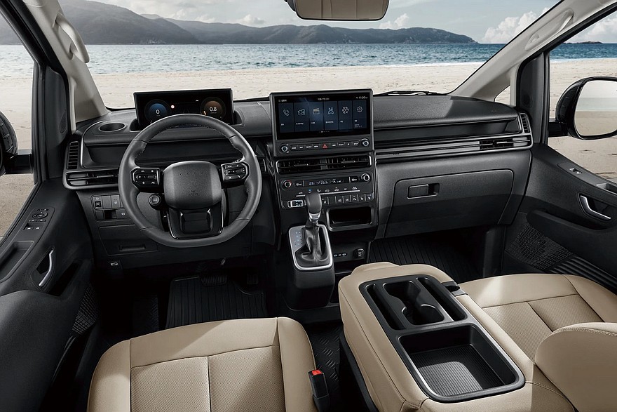Как и прежде, в Корее минивэн Staria Tourer бывает 9- или 11-местным, Staria Lounge представлен в 9- или 7-местном исполнениях. Фургон может вмещать пять человек.