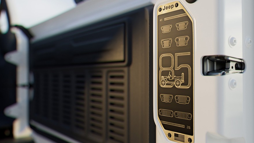 Jeep Wrangler и Gladiator 85th Anniversary Edition получили бронзовые буксировочные проушины и оригинальные 17-дюймовые тёмно-серые матовые колёсные диски. Ещё в списке отличий числятся накладки на крылья в цвете кузова, наклейки и шильдики, указывающие на принадлежность к серии 85th Anniversary Edition. Моделям положена светодиодная оптика и упрочнённое лобовое стекло Gorilla Glass.
