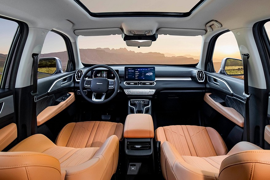 Внутри новый Haval H5 почти повторил Кинг-Конга, разве что переделали центральный тоннель, появился селектор коробки, как у Tank 300, да экран мультимедийной системы стал больше (12,3 дюйма против 10,25 дюймов у Great Wall Poer KingKong). Также заменили материалы отделки. К слову, несмотря на исполинские размеры, внедорожник пока предложен исключительно с пятиместным салоном. Минимальный объем багажника производитель не озвучил, но похвастался показателем со сложенными спинками второго ряда: 2116 литров.