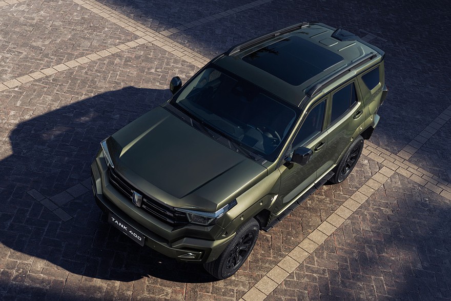 В Китае серийный Tank 400 дебютировал в 2023 году. Модель имеет переднюю двухрычажную подвеску и задний неразрезной мост. Длина вездехода с учетом наружной запаски на багажной двери равна 4985 мм, ширина – 1960 мм, высота – 1905 мм, колесная база – 2850 мм. Паспортный дорожный просвет предназначенного для России внедорожника – 235 мм. Угол въезда составляет 33 градуса, съезда – 31 градус. Максимальная глубина преодолеваемого брода – 800 мм. Внедорожник строго пятиместный. Объем багажника – 566 литров, со сложенными спинками второго ряда кресел этот показатель увеличится до 1803 литров.
