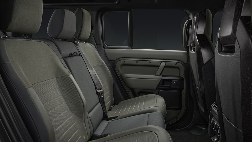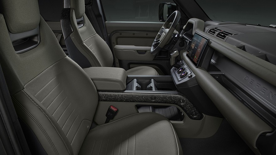 Список вариантов оформления интерьера включает в себя несколько дополнительных вариантов отделки из других современных материалов. Помимо этого, для Land Rover Defender Octa были разработаны новые сидения и установлена иная акустическая система.