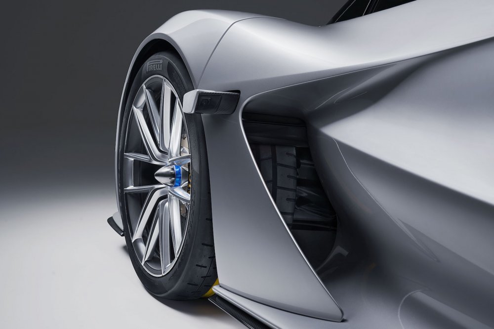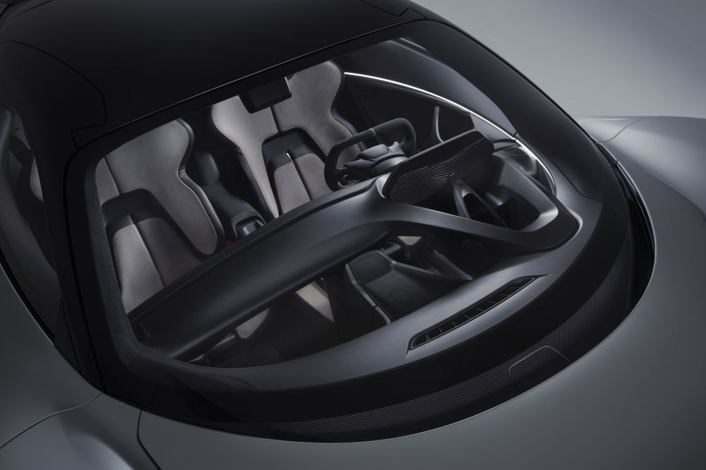 Интерьер сделан подчёркнуто минималистичным и воздушным — передняя панель и центральная консоль тонкие и словно парят в воздухе, при этом консоль изящно усеяна расположенными в ромбовидных углублениях сенсорными клавишами, которые легко нащупать вслепую. Штурвал — словно у болида Формулы-1, а за ним — полностью виртуальный мультифункциональный щиток приборов. Других дисплеев, за исключением тех, что отвечают за обзор, в машине нет. В отделке демонстрационного автомобиля много «голого» карбона, но по желанию заказчика эту наготу можно прикрыть более благородными и традиционными для британских спорткаров материалами (кожей и деревом). Каркасы ковшеобразных кресел тоже сделаны из карбона, тормоза — карбон-керамические, о конструкции подвески пока сведений нет.