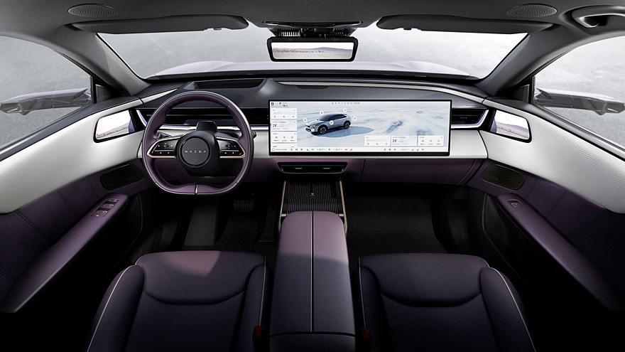 Салон Mazda EZ-60 выглядит богаче, чем у исходного Deepal S07: у Мазды свой руль и свои кресла, изменён дизайн воздуховодов, центрального тоннеля и дверных карт, причём в передние дверные карты встроены мониторы, заменяющие наружные зеркала заднего вида. Роль щитка приборов выполняет проекционный экран, а справа от руля на передней панели разместилось монолитное 26,45-дюймовое табло, как у кроссоверов Li Auto. Штатная аудиосистема насчитывает 23 динамика. Уже в «базе» будет девять подушек безопасности и богатый набор электронных ассистентов водителя вплоть до автопилота второго уровня.