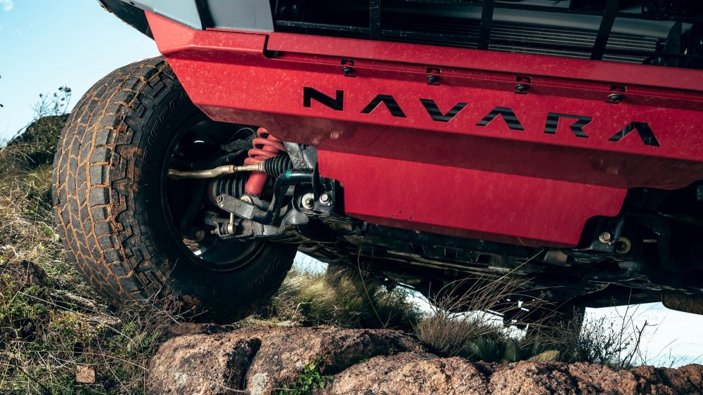 В подвеске применены более высокие и жёсткие пружины, более энергоёмкие амортизаторы и более крупные отбойники спереди. Характеристики всех элементов подбирались таким образом, чтобы пикап имел хорошую плавность хода на дорогах с твёрдым покрытием и при этом мог ехать достаточно быстро по пересечённой местности. Днище от ударов защищает 3-миллиметровая стальная пластина, фрагмент под переднем бампером украшен надписью Navara. Сам передний бампер полностью новый, со встроенной светодиодной полосой и возможностью установки лебёдки. В колёсные арки установлены расширители.