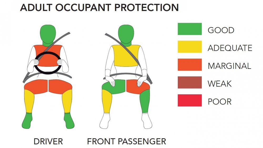 В прошлом году Nissan Magnite, предназначенный для рынка Индонезии, уже проходил два краш-теста (фронтальный и боковой) по программе ASEAN NCAP и получил четыре звезды рейтинга за защиту взрослых, при этом эксперты обнаружили слабую защиту грудной клетки водителя при фронтальном ударе. Похожая картина сложилась у экспертов Global NCAP по результатам единственного фронтального удара на скорости 64 км/ч о деформируемый барьер, установленный с 40-процентным перекрытием стороны водителя: грудная клетка водителя испытала высокий коричневый уровень нагрузок, означающий серьёзный риск получения тяжёлых травм, которые могут оказаться несовместимыми с жизнью. Защита коленей и бёдер оказалась даже хуже, чем индонезийского варианта — пограничный оранжевый уровень вместо зелёного. Защита детей в Магните признана слабой (две звезды) из-за отсутствия креплений Isofix — детские кресла пришлось фиксировать «взрослыми» ремнями, а это всегда плохо, но лучше, чем ничего.