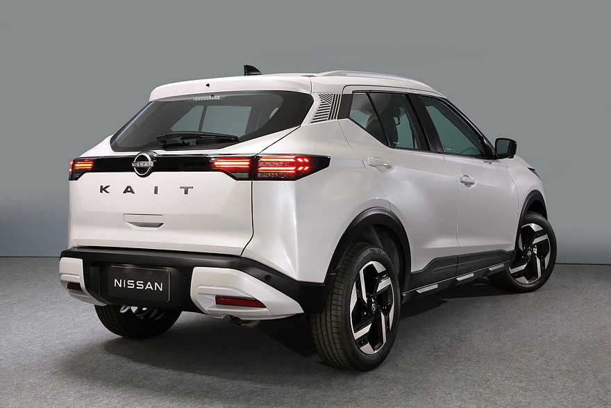 У Kait кузов от «первого» Kicks, но дизайн все же свой. Кроссоверу достались двухэтажная головная оптика, новые бамперы, капот и радиаторная решетка. Еще заменили багажную дверь и фонари, задний номерной знак перенесли ниже. Паркетник по умолчанию имеет 17-дюймовые колеса.