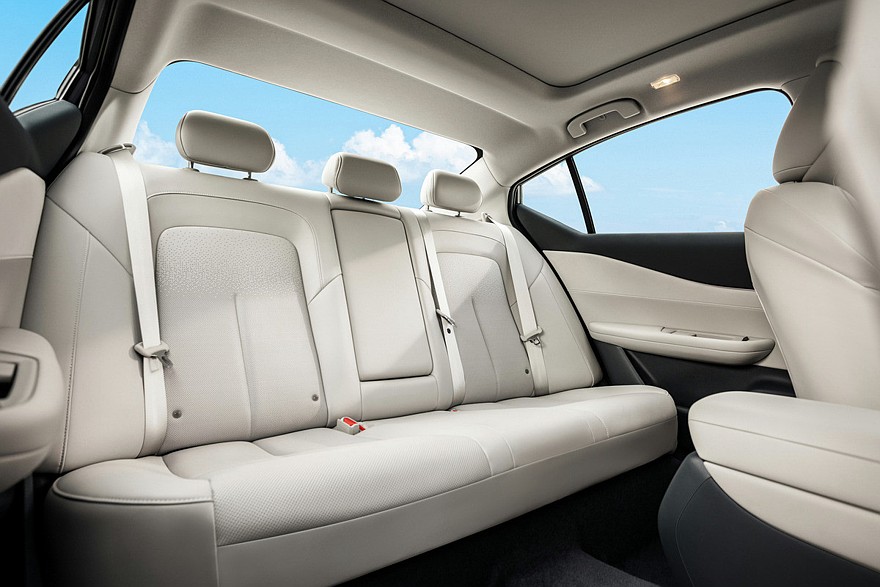 Салон полностью новый. Teana достались другие передняя панель, карты дверей, руль, центральный тоннель и селектор коробки. Уже в базе идут полноценная виртуальная приборка на 10,25 дюйма и новая мультимедийная система с планшетом диагональю 15,6 дюйма (китайская Nissan Altima имеет тачскрин на 12,3 дюйма). Мультимедиа Теаны работает на операционке HarmonySpace 5.0 от фирмы Huawei. Причем новый седан Nissan стал первым чисто бензиновым автомобилем в Китае, использующим эту ОС: прежде HarmonySpace 5.0 имели только электрифицированные модели. Отдельного блока управления «климатом» больше нет – настройки вшиты в тачскрин. Хотя под центральными дефлекторами обдува все же оставили ряд физических дублирующих клавиш.