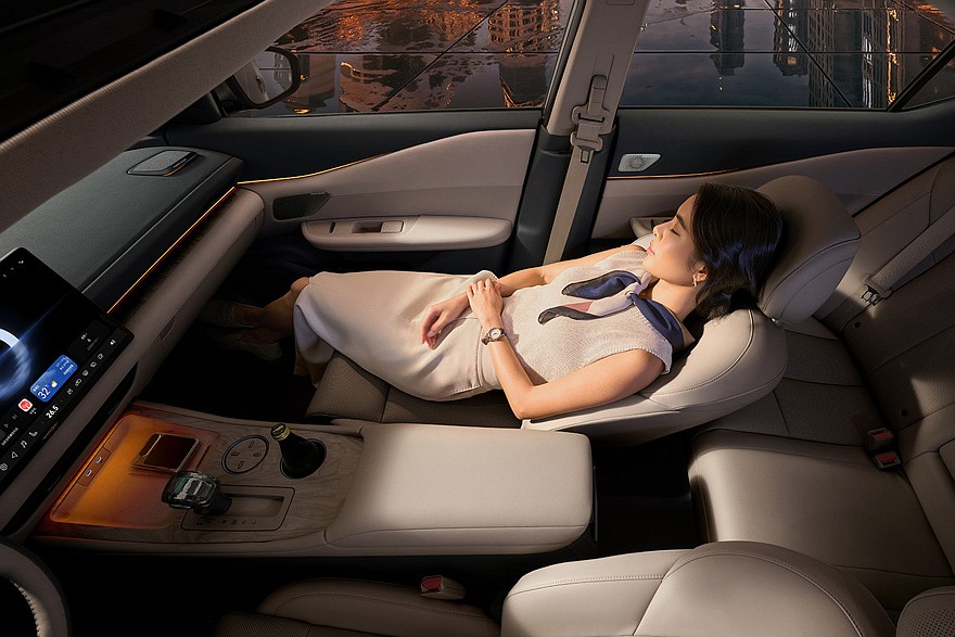В списке стандартного оборудования самого дешевого седана помимо упомянутых выше дисплеев также значатся: обычный люк в крыше, обивка из экокожи, двухзонный климат-контроль, аудиосистема от Huawei с 15 динамиками, камера заднего вида, круиз-контроль. В следующей версии появляются панорамный люк, натуральная кожа, подогрев, вентиляция и массажер передних сидений, подогрев руля, штатный видеорегистратор. Предтоповое и топовое исполнения – это беспроводная зарядка для смартфона мощностью 50 Вт, два дополнительных динамика в подголовнике водительского кресла, камеры кругового обзора, адаптивный «круиз», системы автоторможения и слежения за разметкой.
