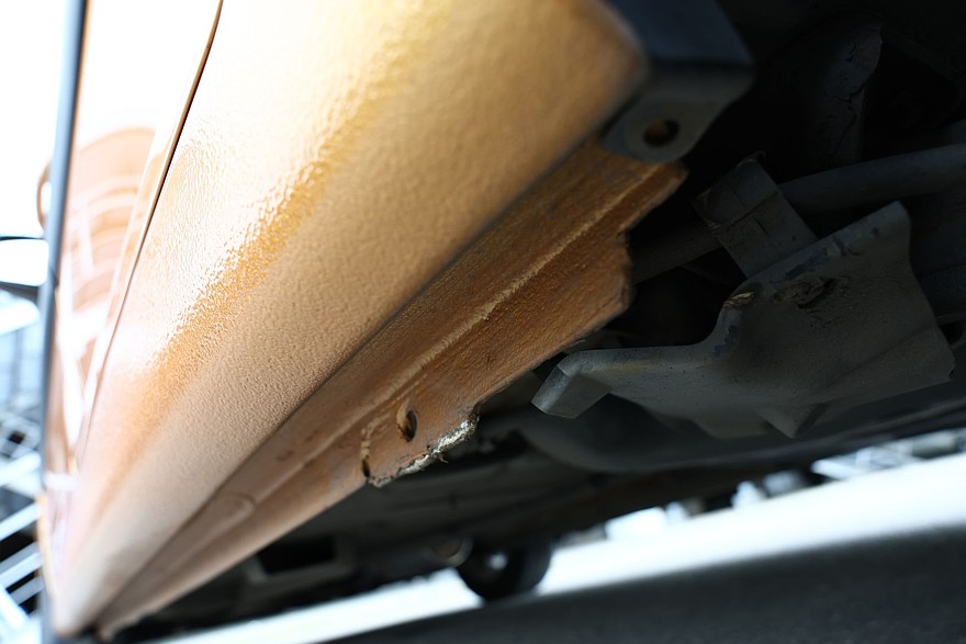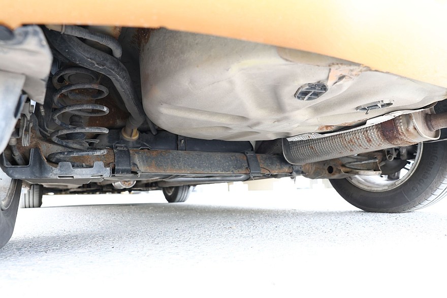 Проблемы с порогами на подъемнике очень заметны. Видно, что страдают вся передняя кромка и часть порога в задней арке. Коррозия наружной панели порога обычно сквозная, даже если слой антигравия на вид целый. Достаточно простучать нашлепку антигравия, и металл обвалится. В задних арках очень много коррозии можно обнаружить под локером. Тут сильно страдает передняя часть арки, чуть меньше ржавеет зона вокруг кронштейна амортизатора и сильно – лонжерон у опоры пружины. Труба бензобака пластиковая, проблем обычно не доставляет, и следить нужно только за тем, чтобы в ней не было трещин из-за ударов сзади: проложена она по самому краю кузова.