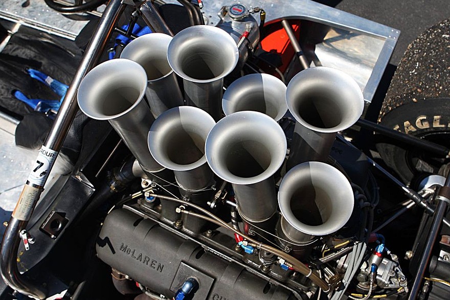 Инженерам Porsche открылся настоящий Дикий Запад, где с 1967 по 1971 годы пилоты Bruce McLaren Motor Racing громили всех без разбора на модели М8, в финальной итерации которой с индексом M8F объем атмосферного биг-блока Chevrolet с механическим впрыском топлива вырос до 8,3 литров, а отдача перевалила крепко за 700 сил. Да, в 1967 году Брюс Макларен собственной персоной завершил сезон на первом месте на М6А, а не на М8, но в нашем случае это ни на что не влияет.
