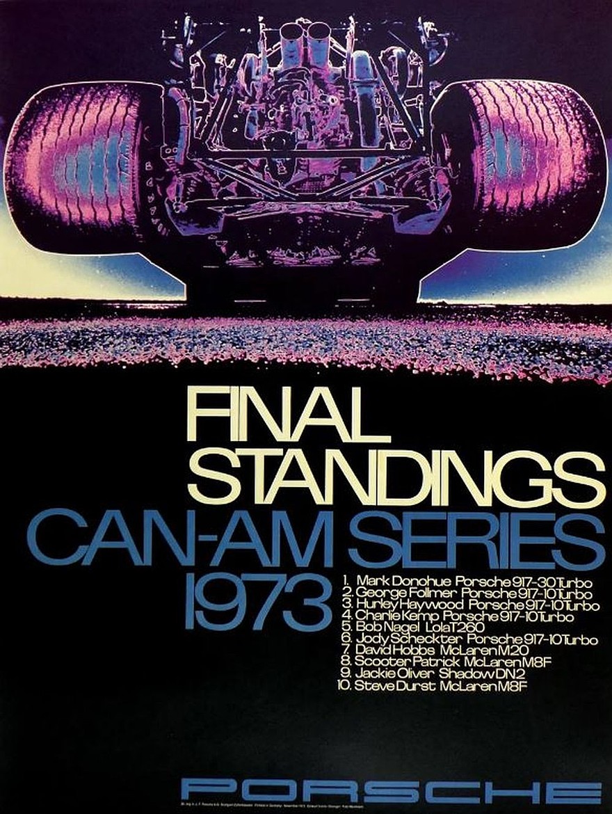 На первом этапе в 1973 году золото взял Чарли Кемп, на втором – Джордж Фоллмер, оба управляли 917/10. Ну а дальше Марк Донохью финишировал на высшей ступеньке пьедестала шесть раз на оставшихся шести этапах с безотказностью автомата Калашникова и с более чем двукратным отрывом от коллеги по команде в лице Фоллмера стал чемпионом. Херли Хэйвуд на 917/10 замкнул тройку лидеров, а Чарли Кемпу пришлось довольствоваться четвертой строчкой в личном зачете. Как говорится, занавес. Впоследствии 917 назовут болидом, убившим Can-Am. Но фактически же Can-Am похоронил топливный кризис, разразившийся в 1973 году. Руководство серии приняло решение ограничить количество топлива, выделяемого на гонку, и опять подстраиваться под новые реалии в Porsche сочли ниже собственного достоинства. В 1974 году расписание урезали до пяти мероприятий, после чего лавочка прикрылась окончательно. Да, спустя пару лет чемпионат возродили, вот только на смену ультимативным снарядам, созданным по регламенту Group 7, пришли формульные болиды F5000.