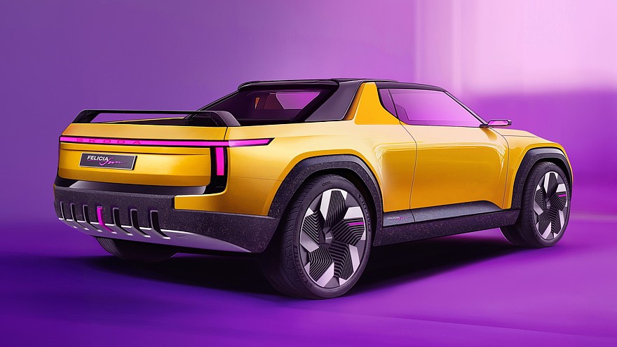 Новый Felicia Fun получил передок от концептуального электрического кроссовера Skoda Vision 7S трёхлетней давности. Сдвижного второго ряда сидений в новом кузове, к сожалению, нет (его, честно говоря, было бы сложно совместить с современными стандартами пассивной безопасности), зато от предшественника остался спойлер на корме. Розовые фонари и розовая тонировка в новом пикапе олицетворяют пляжную, праздничную атмосферу безмятежности и игривого времяпрепровождения.