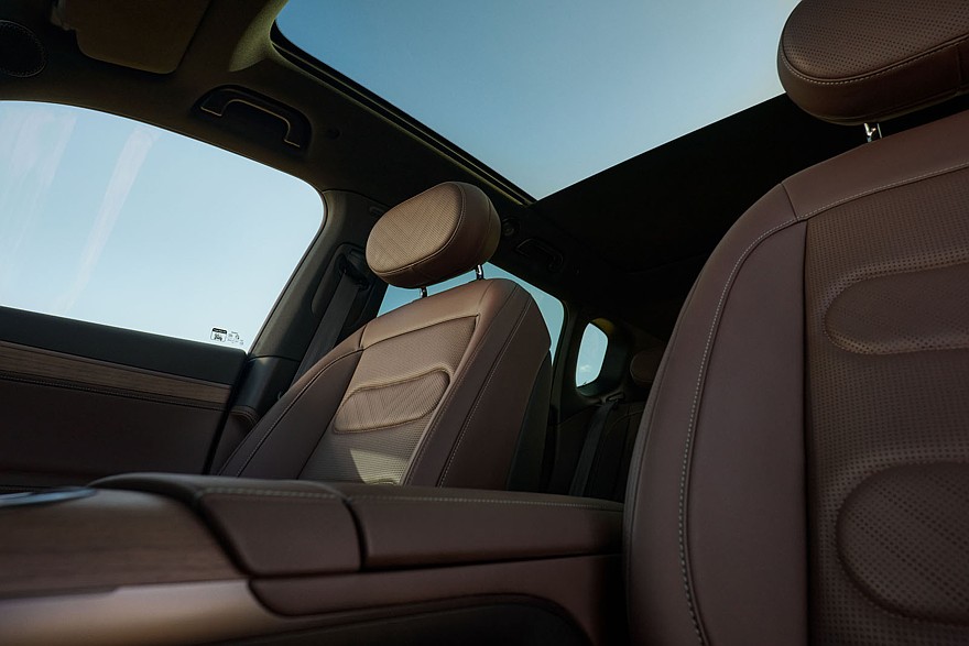 У паркетника начального уровня на задней оси расположен единственный электромотор мощностью 340 л.с., а его максимальный крутящий момент – 373 Нм. У средних исполнений с задним приводом отдача электродвигателя равна 363 л.с. (крутящий момент такой же). Топовым вариантам положен полный привод, то есть двухмоторная установка, совокупная мощность которой составляет 587 л.с. (643 Нм).