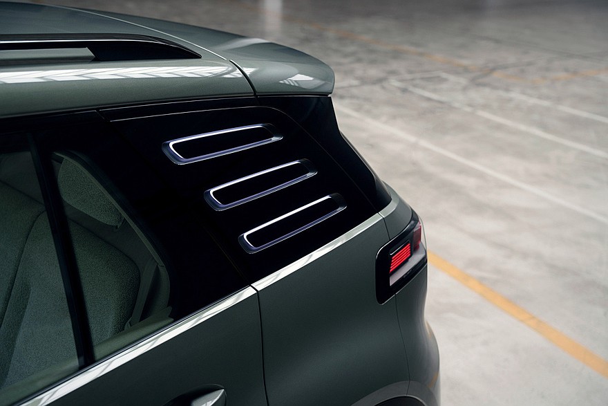 В салоне – преимущественно тканевая отделка, раздельные экраны приборки (11 дюймов) и мультимедийной системы (13 дюймов), над центральным тоннелем расположена «парящая» консоль. Сам тоннель представляет собой полупрозрачный бокс, в который поместили растения, но у товарного SUV такого решения, конечно, не будет.