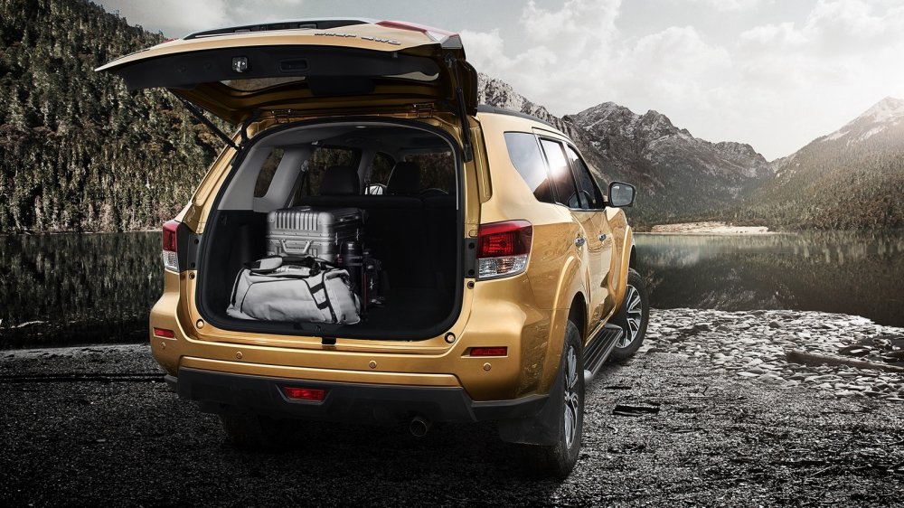 По габаритам новый внедорожник вышел чуть больше, чем конкуренты, построенные по тому же рецепту – Toyota Fortuner и Mutsubishi Pajero Sport: он имеет 4 882 мм в длину при колесной базе в 2 850 мм. Из положительных качеств стоит отметить подвеску, без масштабных изменений взятую у Navara, что означает пружины и рычаги, а не рессоры в креплении заднего моста. Кроме полного или заднего привода можно также выбирать между механической шестиступенчатой коробкой или семиступенчатым автоматом.