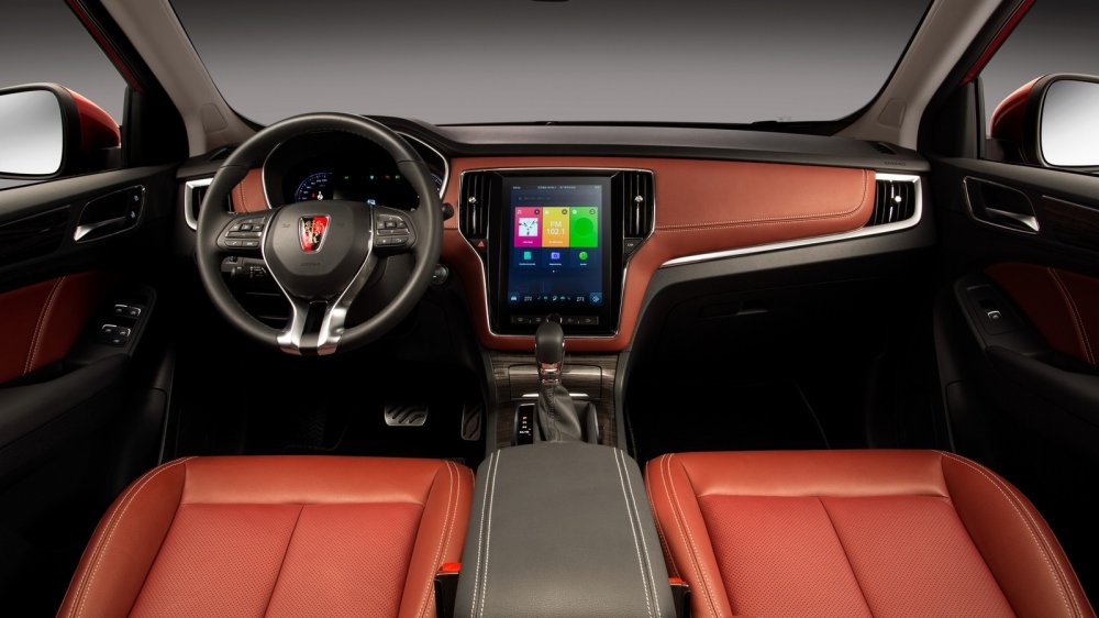Само собой, уровень цен у Roewe несколько иной, нежели у JMC — от 100 до 190 тысяч юаней. И это не удивляет, когда видишь интерьер, облагороженный не только кожей и деревом (оставляем за собой право сомневаться в натуральности того и другого), но и 10,5-дюймовым мультимедийным дисплеем, расположенным вертикально, как у электросуперкаров Tesla и новых моделей Volvo.