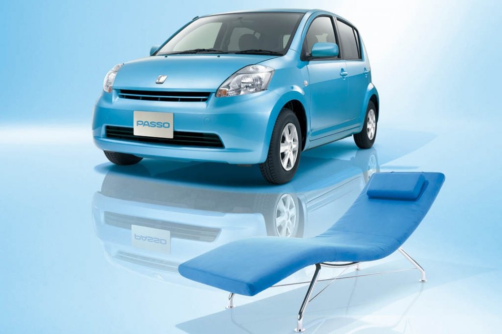 Компактный хэтчбек выпускается только для японского рынка, а его миниатюрные формы, обтекаемые линии и яркая расцветка позволяет отнести к категории «женских» средств передвижения. Что касается цвета кузова, то он представлен в довольно насыщенной гамме: можно выбрать розовый, голубой, красный, оранжевый, зеленый Passo. Довольно интересна версия с приставкой Moda, которая отличается двухцветным кузовом и креативным оформлением салона. Второе поколение, выпускаемое с 2010 года, оснащается литровым двигателем мощность 95 л.с. Управление осуществляется с помощью вариатора, в первом же поколении стоит АКП. Расход топлива составляет 3-4 литра на 100 км пути. Третье поколение обзавелось системой Smart Assist, которая помогает предотвратить столкновения.
