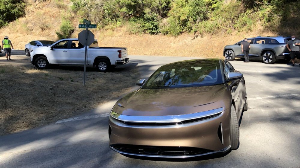 Сентябрьская презентация состоится при любом раскладе, так как она заочная, то есть пройдёт в формате онлайн. Под это дело, как водится, заранее делают фирменную фотосессию в каком-нибудь живописном месте. Пиарщики Lucid выбрали городок Пескадеро (штат Калифорния) на западном побережье, попросили полицию оградить участок дороги, чтобы съёмке никто не мешал, и приступили к работе. Но без случайных зрителей всё же не обошлось: фотографии новинки всплыли в Твиттере на страничке Coast Redwoods и на форуме LucidOwners.