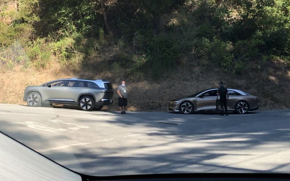 Новость состоит в том, что 9 сентября Lucid Motors, судя по всему, представит не одну, а две машины — серийный Air и прототип будущего кроссовера, у которого пока даже нет официального названия. На съёмке присутствовали обе машины, и на шпионском снимке, где они стоят рядом, видно, что кроссовер чуть крупнее седана, хотя стилистика у них общая.
