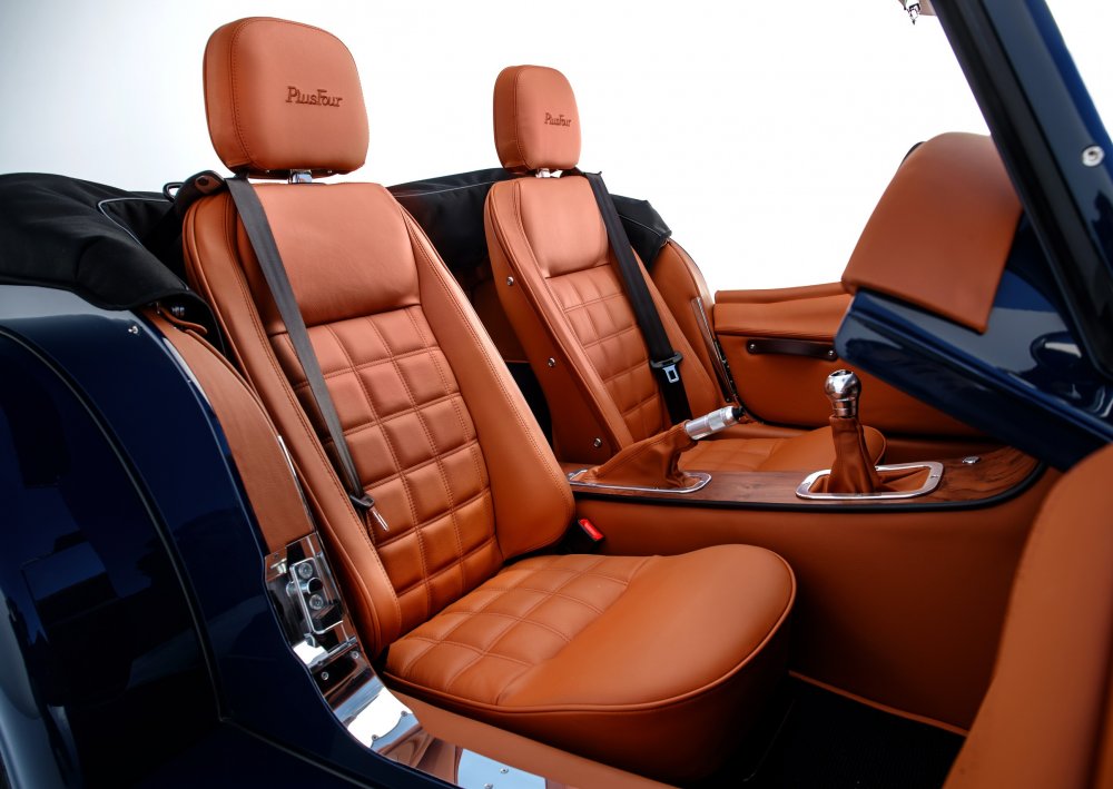 И вот, год спустя после дебюта нового Plus Six, свет увидел новый Plus Four – замена цифры на буквы знаменует смену поколений и позволяет неискушённым автолюбителям не путать старый Plus 4 и новый Plus Four, тем более что внешне они различаются мало. Компания сохранила своему наиболее доступному родстеру фары и фонари в отдельных корпусах, базовые 15-дюймовые спицованные колёса (штампованные и литые тоже доступны), тонкую рамку плоского ветрового стекла, маленькие дверцы на внешних петлях и прочую атрибутику олдтаймера.