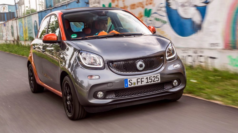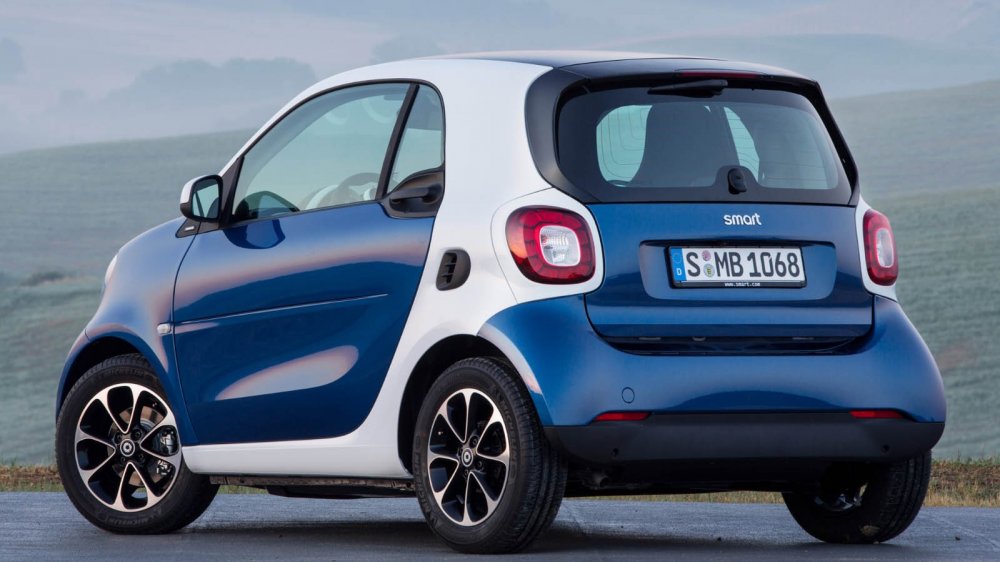 Нынешнее, третье поколение сверхкомпактного автомобиля было разработано Daimler совместно с Renault – Twingo, продающийся в Европе, делит с ним ключевые технические решения и собирается на одном конвейере в Словении с четырехместным smart forfour. Однако концепция smart осталась ровно той же, что и была: в двухместной версии это крошечный заднемоторный хэтчбек длиной в 2,7 метра, а в четырехместной он предлагает задние двери и задний диван, имея меньшие продольные габариты, чем Fiat 500, до которого мы еще дойдем – 3,5 метра. При этом в багажном отделении в любом случае остается минимум 185 литров пространства, а максимально доступный заявленный объем для forfour составляет 975 литров.