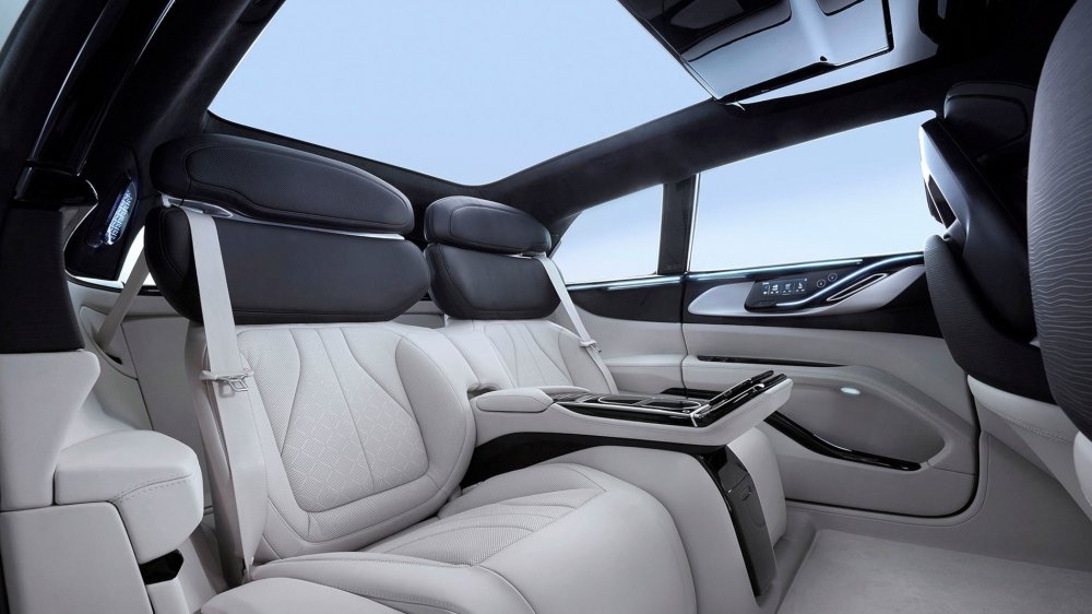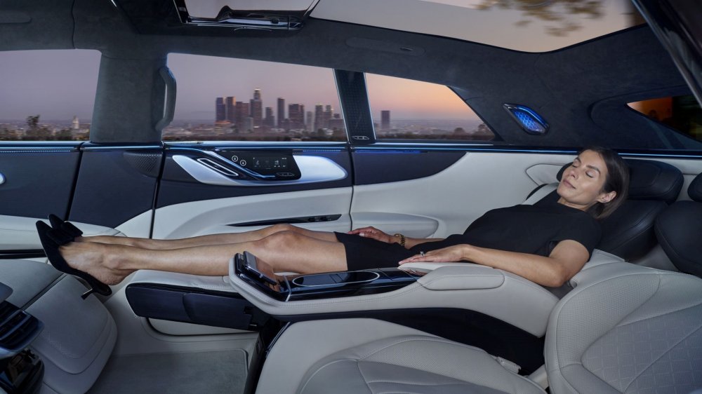 FF 91 — это довольно крупный (колёсная база 3200 мм, габаритная длина 5250 мм) кроссовер с почти однообъёмным кузовом, но салон рассчитан только на четверых, потому что модель позиционируется в сегменте ультра-лакшери, то есть задним седокам обещан царский комфорт. Премьера FF 91 состоялась в начале 2017 года, но лишь в ноябре 2019-го компания впервые показала интерьер кроссовера: он поразил мир одиннадцатью мониторами и креслами с «нулевой гравитацией».