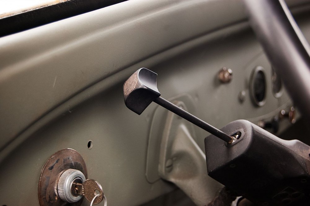 Казалось бы, при таком раскладе центральный переключатель света тоже должен быть тумблером. Но, видимо, запасы тумблеров иссякли ещё на момент сборки панели, поэтому свет переключается поворотной головкой на подрулевом переключателе. Деталька, кстати, весьма изящная.